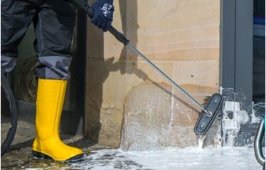 Bislang habe ich es mit einem Druckstrahler versucht, aber kaltes Wasser bewirkt nur kurzfristig einen Effekt und man muss die Prozedur ständig wiederholen, weil man die Algen nie vollständig entfernt. Mit dem Ecofips spritzt man die betroffenen Flächen heiß ab und hat ein perfektes Ergebnis.