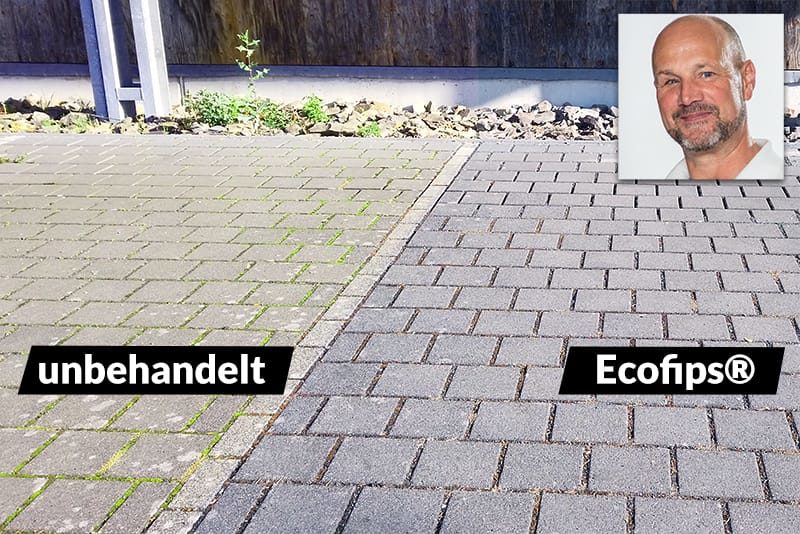 Während unseres Vor-Ort-Termins vernichte ich mit dem Ecofips und seinem innovativen "Heißwasser-Maisschaum-System" Ihr Unkraut und Moose … von Ihren Boden- oder Wandflächen.